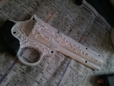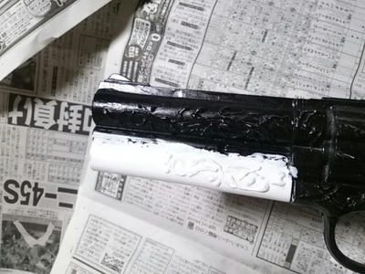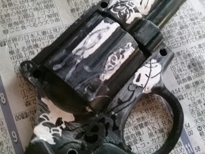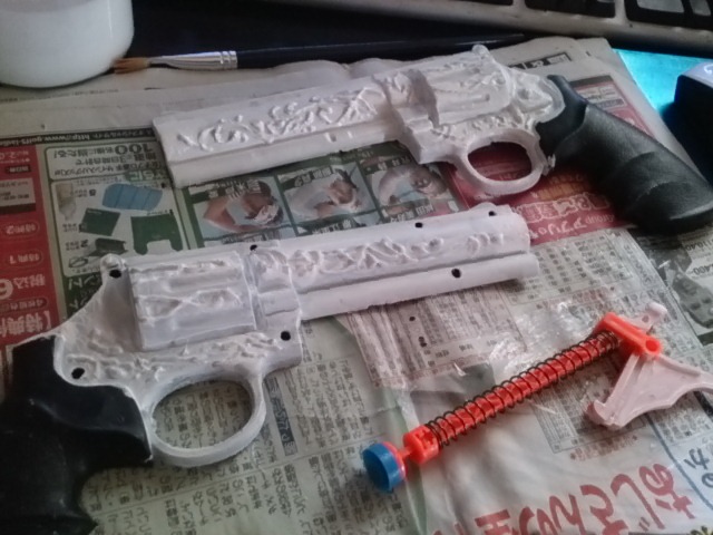 上記の作業を両面にやります。トリガーもジェッソで下塗り。