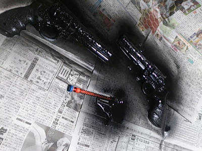 グリップ部分をラッカースプレーでシューーーーーーッ(の写真を撮り忘れました)