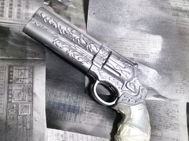 乾いたらグリップ部分をマステして銀のラッカースプレーでシューーーーーーッ